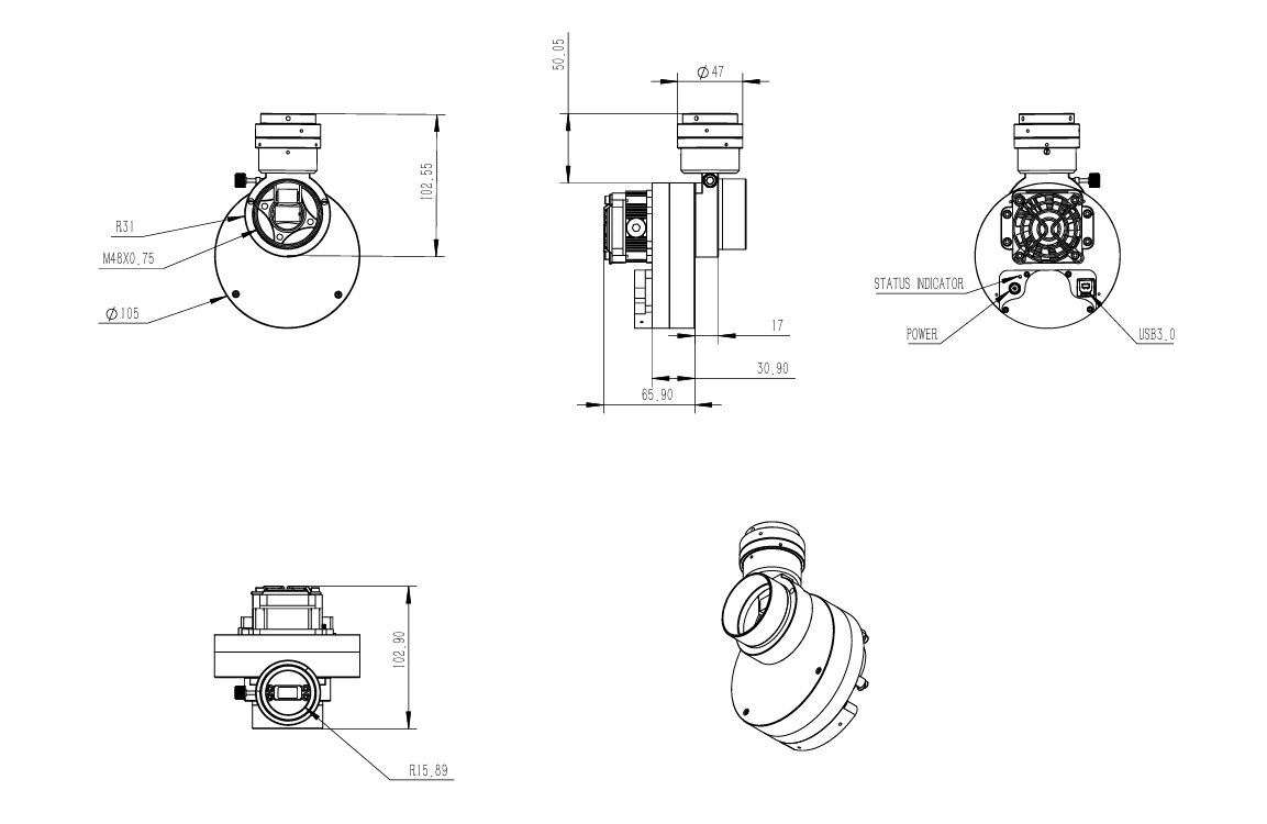 基于QHYCCD在制冷型相机方面多年的产品设计经验,我们提供了完善的防结露措施,包括电加热板,以及可以连接硅胶干燥管的密封腔干燥孔设计,可以有效的避免CMOS自身结露以及避免CMOS密封腔的玻璃窗口结露。