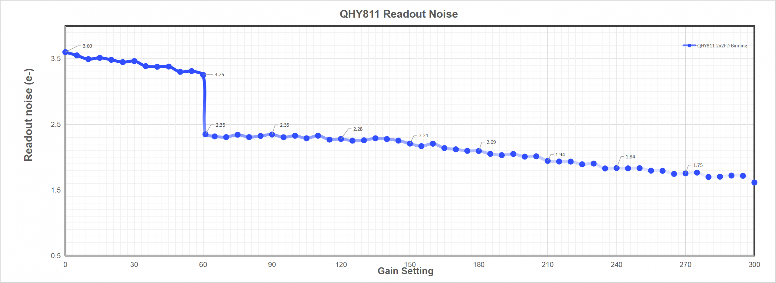 QHY811Pro拥有2.47亿像素,使用SONY IMX811 BSI传感器,19240 * 12840分辨率,读出噪声低至1.2e-。 采用的是原生16位ADC(65536级),有些相机采用12位bin到16位,但它只有4096 * 2 = 8192级,不是原生的16Bit ADC,这将导致弱信号无法很好地采样,并且照片度量不准确。此外,QHY811Pro支持2×2电荷域合并,可以显著提升信噪比。